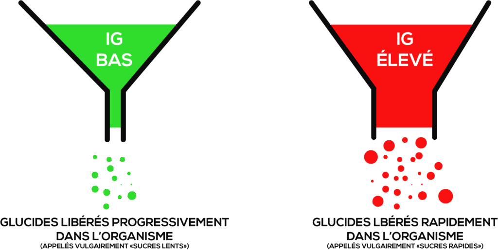 Il s’agit en fait de la vitesse à laquelle les glucides vont se « libérer » dans l’organisme. Plus la valeur est basse, plus la vitesse de libération le sera aussi sachant que l’indice 0 représente le minimum et 100 est l’IG de référence du saccharose.