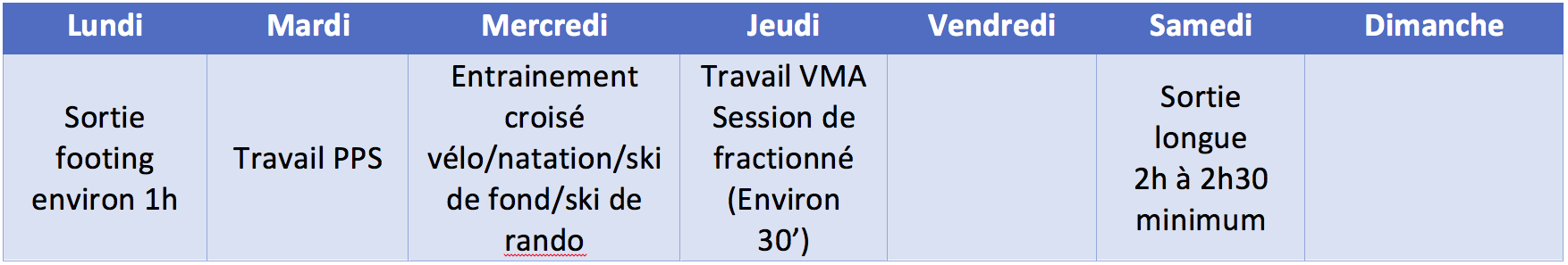 Exemple d’un entrainement type à 5 sorties par semaine (coureur intermédiaire-confirmé)