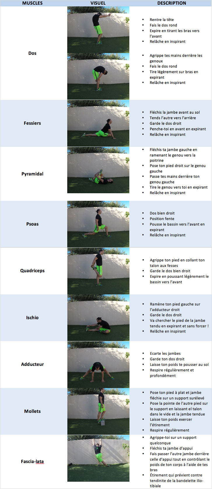 - Ils permettent de relâcher les tensions musculaires que tu as pu contracter lors de ta course