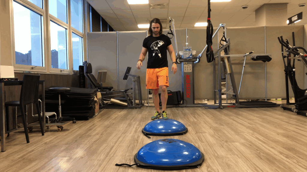 Tu peux effectuer un cycle d’entrainement d’efforts concentriques de 2 à 4 séances puis basculer sur un travail pliométrique. - Les exercices pliométriques vont consister à travailler l’explosivité et la proprioception* en même temps. Ils sont la plupart du temps utilisés en PPS. Par exemple des montées d’escaliers 2 par 2 ou 3 par 3. La pliométrie est relativement traumatisantes pour les muscles et tendons. Il ne faut pas éterniser les séances et les cycles de travail.