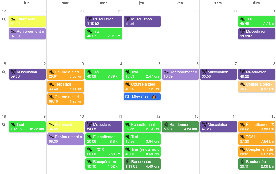 Au fil de la saison il suffira juste de faire des piqures de rappels en fonction de ton calendrier de course. Je reviens sur le fait que plus les échéances approchent, plus la part dédiée au renforcement sera réduite mais pas totalement interrompue. Il est judicieux de maintenir des séances de qualités de 15’ à 20’.